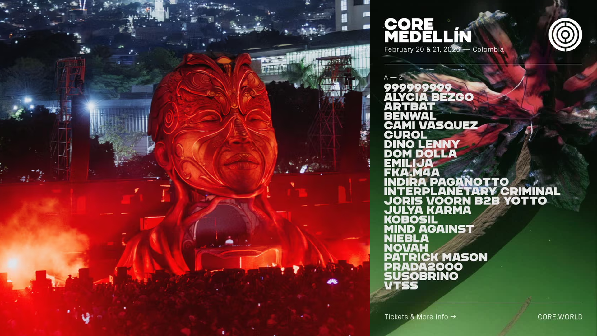 En una jugada audaz de expansión, CORE regresa a Medellín para su tercera edición el 20 y 21 de febrero de 2026, marcando el inicio de su nueva gira mundial que pasará también por Los Ángeles y Melbourne. Con una propuesta artística que fusiona música, naturaleza y arte, el evento promete ser uno de los puntos culminantes del circuito electrónico en Latinoamérica.