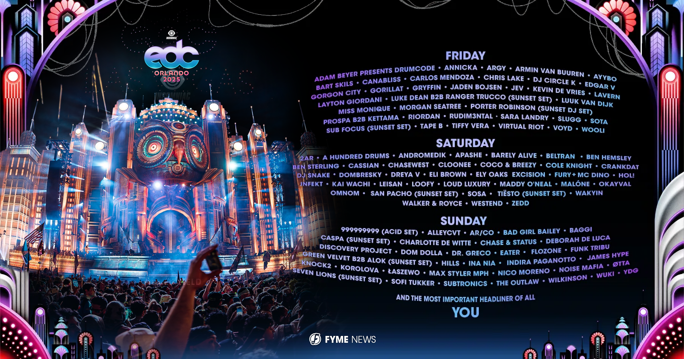 El cierre de EDC Orlando 2025 promete ser explosivo, con una alineación encabezada por: