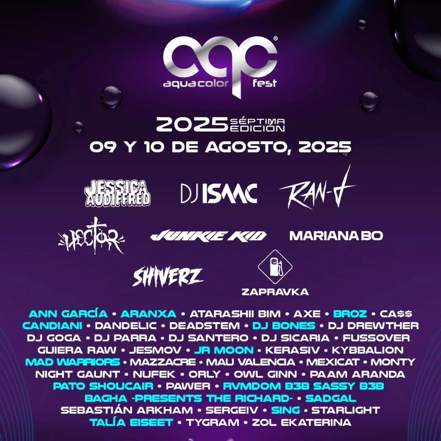 Además del gran talento nacional como Jessica Audiffred, Mariana Bo, Junkie Kid, Ann García, Aranxa, solo por mencionar algunos, porque en Aqua Color Fest sobra el talento.